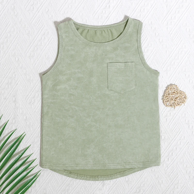 Classic Design Kids Clothing Summer Sleeveless Design Solid Batik Cotton Children's T-shirt With Indoor